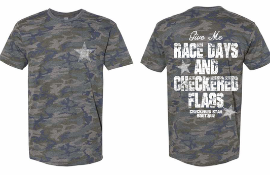 "Give Me Race Days & Checkered Flags" Camo T-Shirt