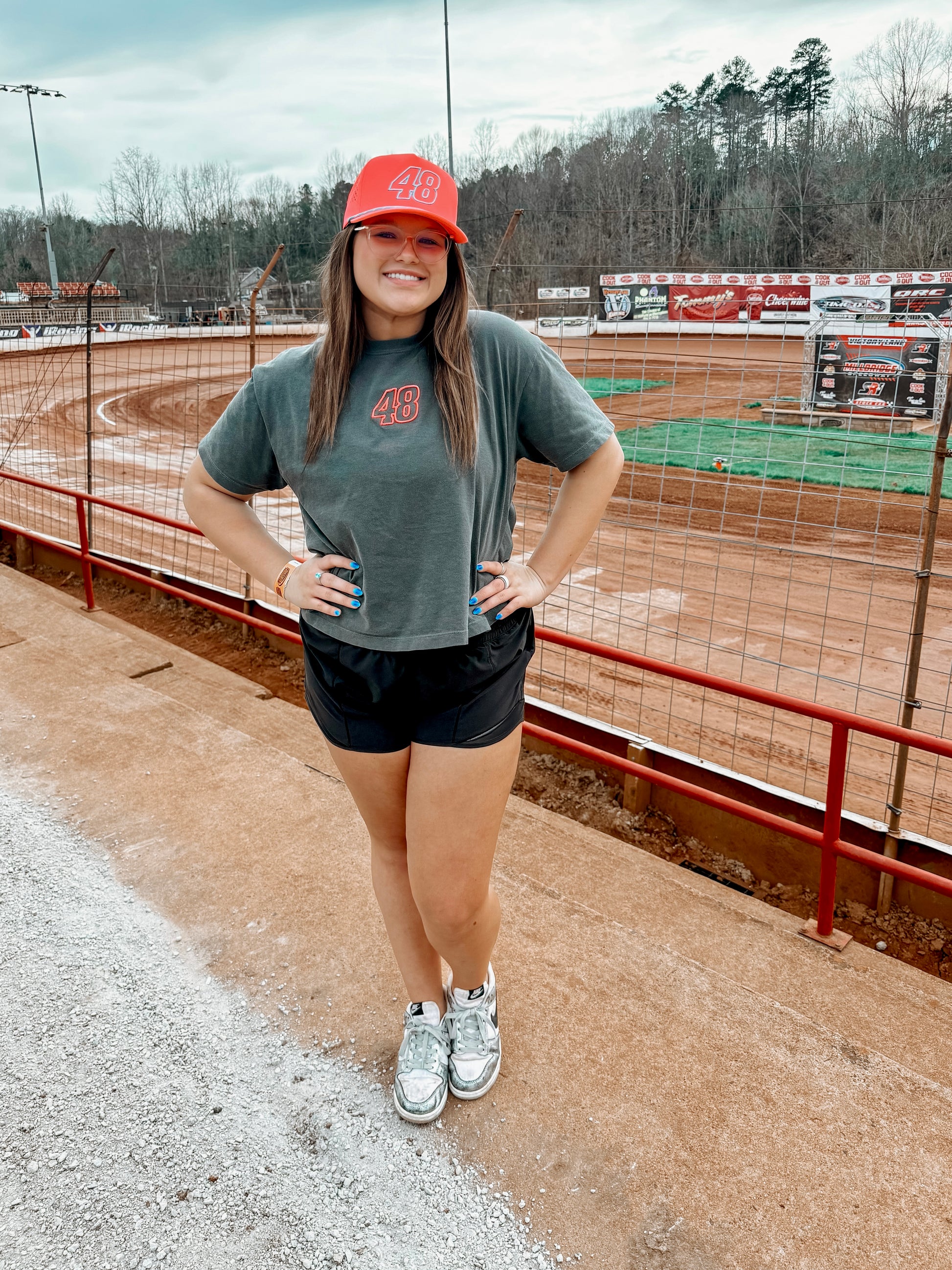 Perfect for race day, track nights, and everyday wear.